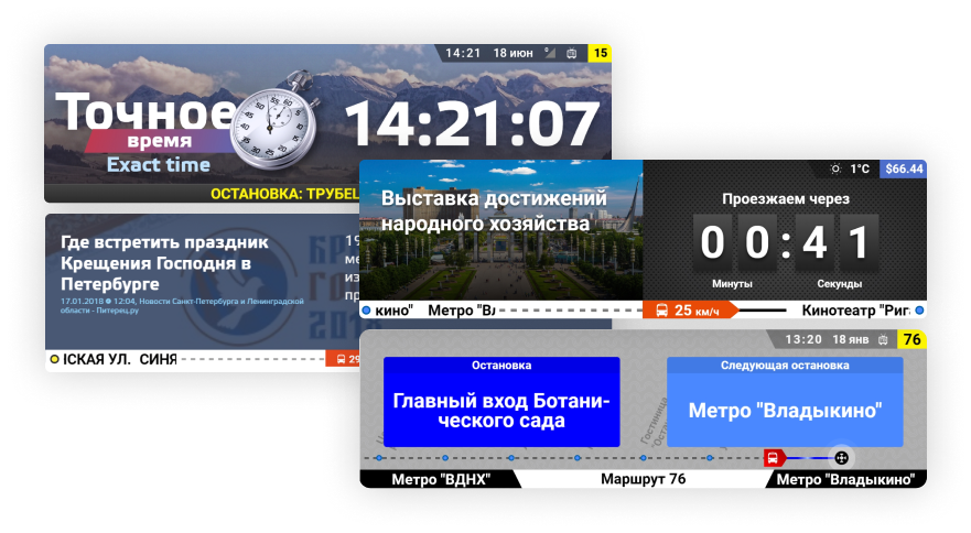 Узнавай информацию о поездке, перевозчике, водителе, транспортном средстве, о температуре в салоне и за бортом, скорости движения