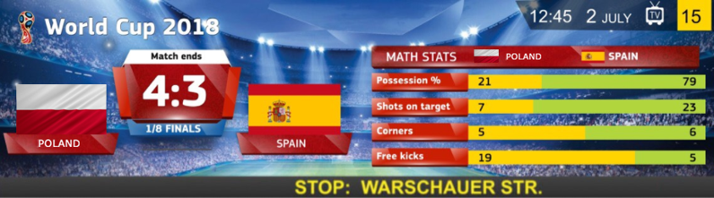 The multimedia screen is divided into zones. The main zone is a video zone (the most effective form of interaction with the audience). It broadcasts news, ads, short videos, and other. Additional zones display navigation along with the route, current time, weather, etc.